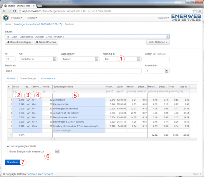 Eingabe Eco-Berechnung (CO2, UBP, Graue Energie) (Modul "Graue Energie") (Inhaltsverzeichnis)
